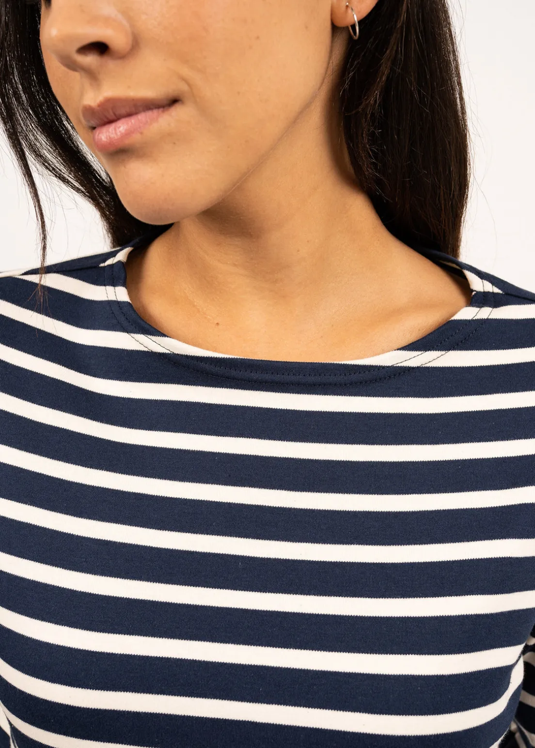 Our iconiic sailor striped shirt, in a new fabric ! Made in Interlock, a durable, stretch fabric, this sailor shirt is even more comfortable thank our iconic designs. We love the softness and long-lasting properties of the fabric, which will allow you to love and wear your shirt for years.- Interlock