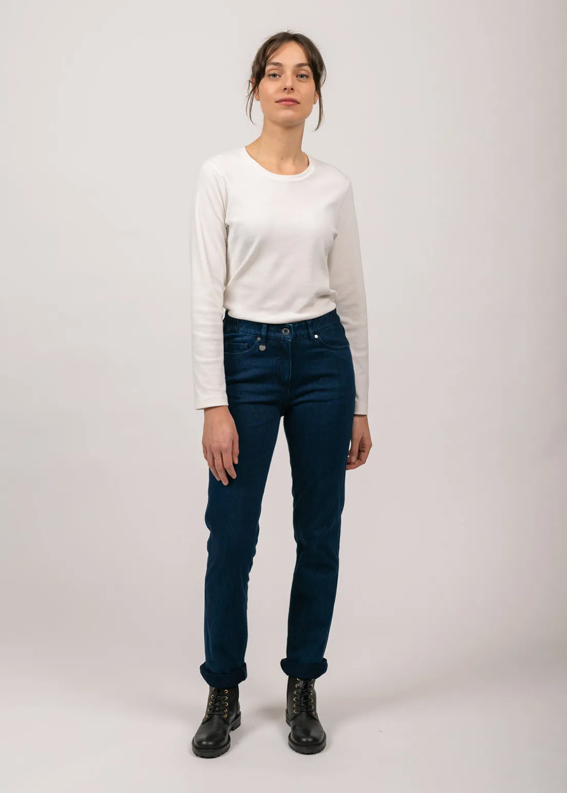 The best asset of the Patricia pants ? The comfort. With their elasticated waist and stretch fabric, they easily adapt to any body shape. Their knitted fabric, looking like jean, allows them to stretch, to fit you best.- Comfort fit
