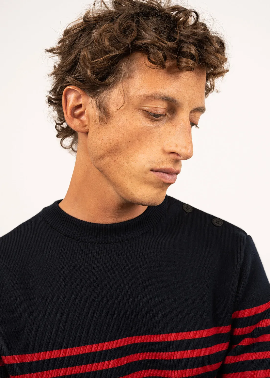 Ideal for those who love the charm of the authentic sailor jumper but seek more comfort, the Rochefort sailor jumper is both traditional and comfortable. Made of merino wool, it is soft, warm, and breathable. Its cut follows the codes of the classic sailor jumper : a remeshed round neck, buttoning on the shoulder for easy donning, a 1×1 rib knit, and a length that protects the back, even when bending over.