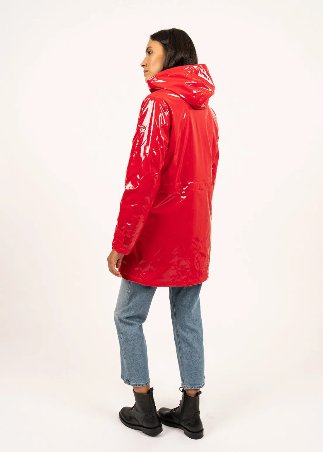 Waterproof parka with hood. Decorative front zip. Patch pockets with popper. Popper tab at cuffs. Parker lined in plain jersey. Inner zip pocket. Drawstring at the waist- Glossy raincoat : polyester (100%)