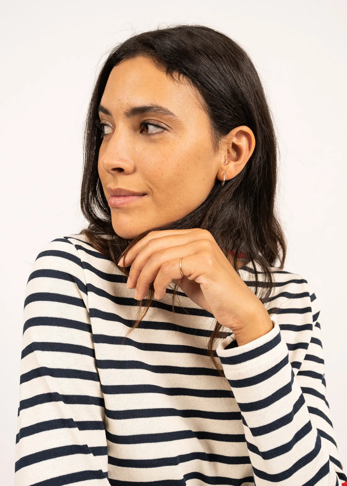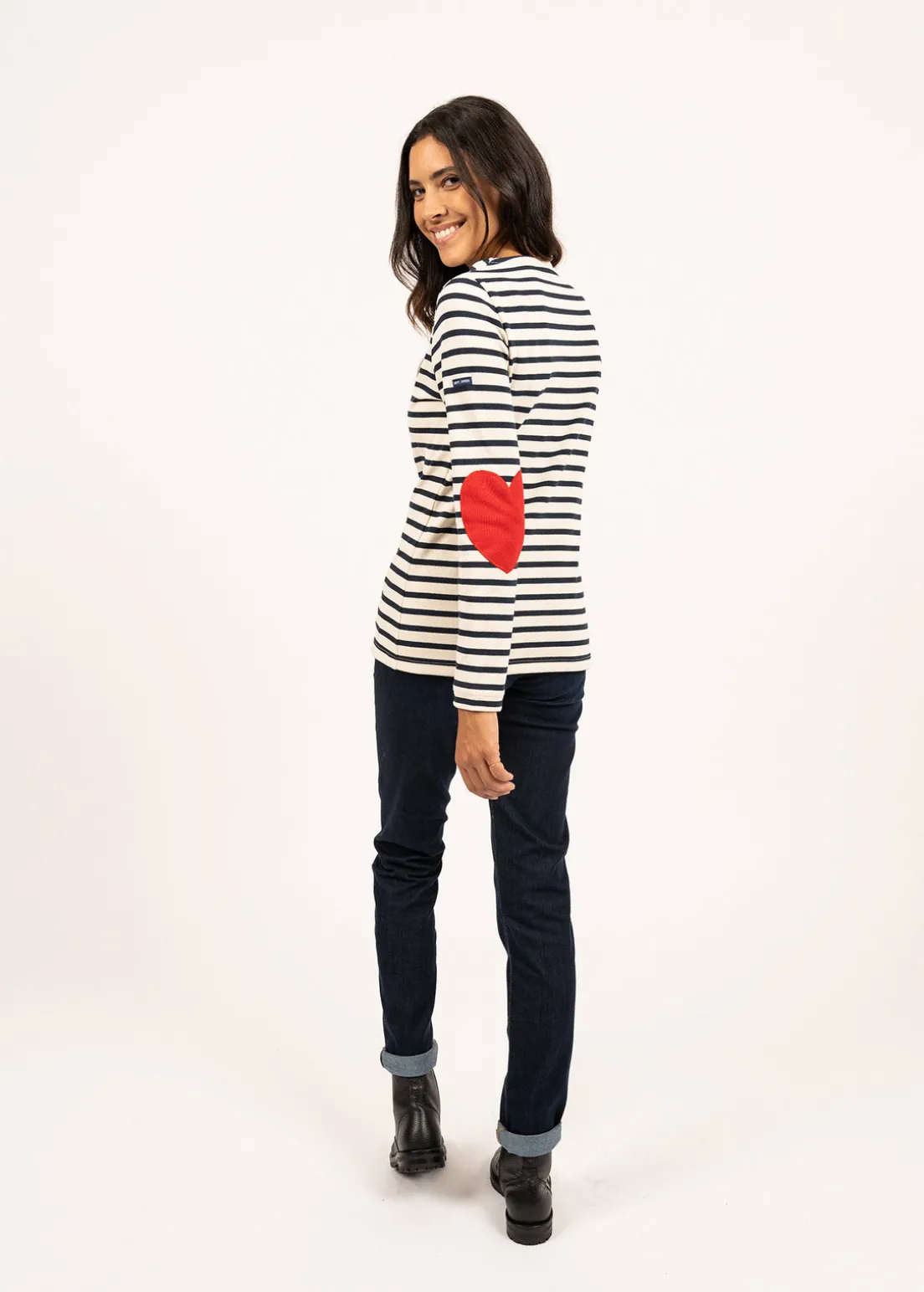 Made in our Atelier in Normandy, France, the Vaujany striped jersey is our iconic striped sailor jersey with a twist ! It gathers the features of our iconic piece, enhanced by heart-shaped elbow patches. A perfect piece for striped sailor jersey lovers.- Heavy jersey