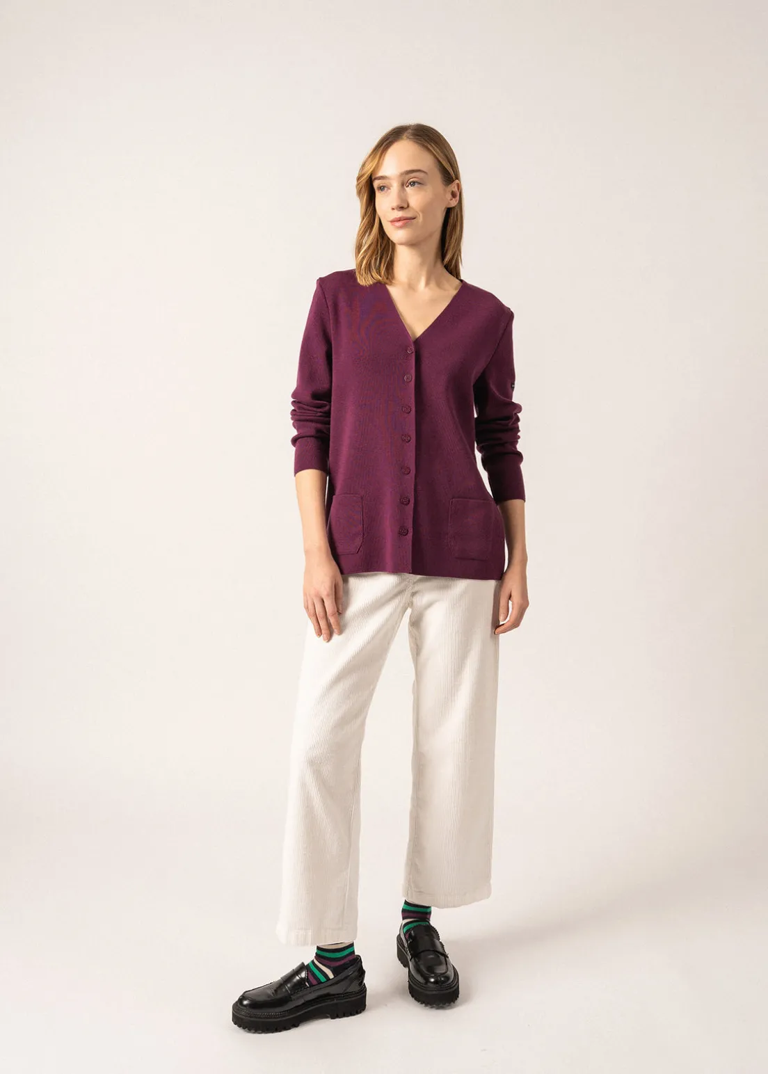 Blainville is a timeless cardigan in wool, with a V neckline. Soft and comfortable, it is easy to match, for an elegant, classic look. A little longer than usual, the Blainville cardigan features two patch pockets and small metal buttons.- 1×1 rib knit