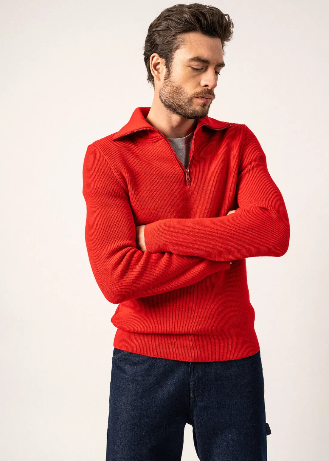 Easily adopted by Sailors because it keeps them from de cold winds, the trucker-style jumper has a special place in SAINT JAMES’ collections. Contentin is knitted is a soft wool, making it comfortable and easy to wear.- 1/2 cardigan rib
