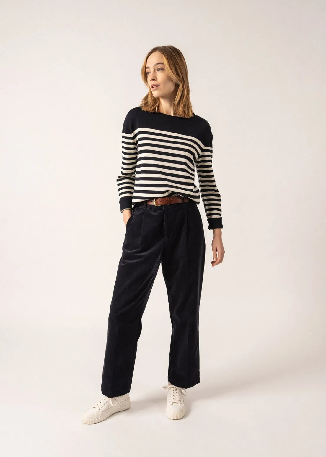 Inspired by our iconic sailor striped shirts, the Ecrins jumper is a striped jumper, made in our Ateliers. Knitted in the same soft and fine wool as our Marée jumper, it is both light, comfortable and warm. A lovely piece to transition from summer to winter and stay striped!- Winter jumper/mariner