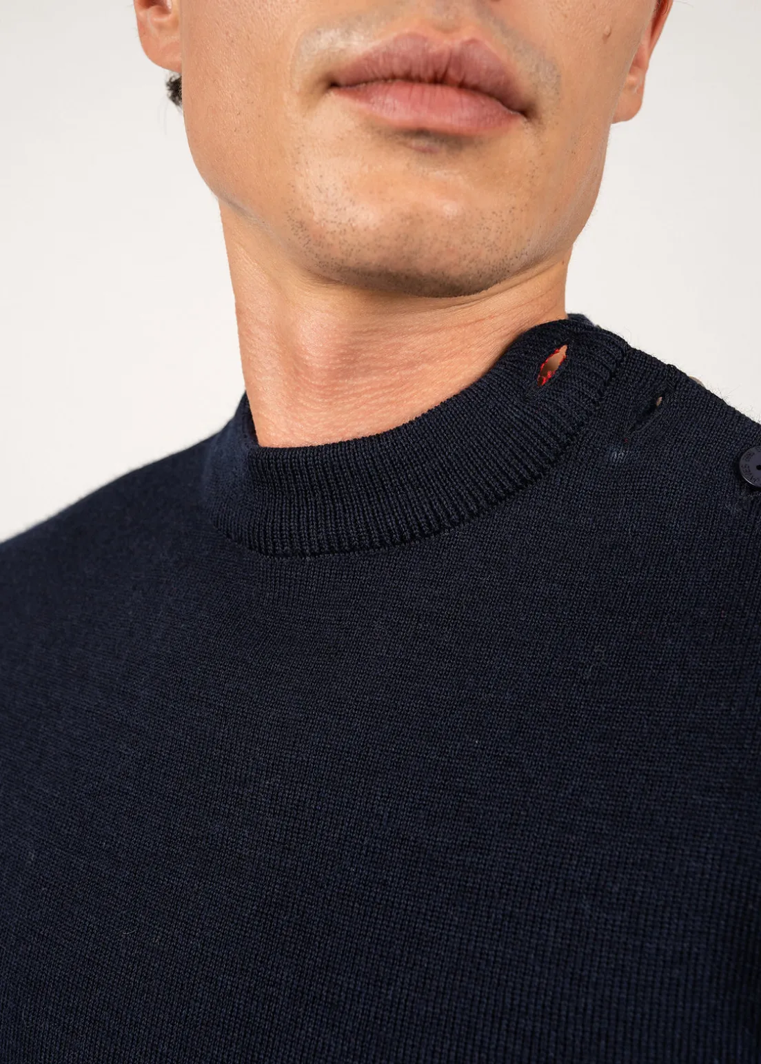 When two essential institutions of French heritage meet, it gives rise to a beautiful collaboration inspired by each other’s legacy, creating a range of products in their image: elegant, understated, and made in France. A must-have, the Sailor jumper is adorned with the colours of the Comédie Française with its red elbow patches. Close-fitting, thick, and warm, it is THE traditional sailor jumper, reworked for this collaboration.- Round neck jumper with contrasting inner band