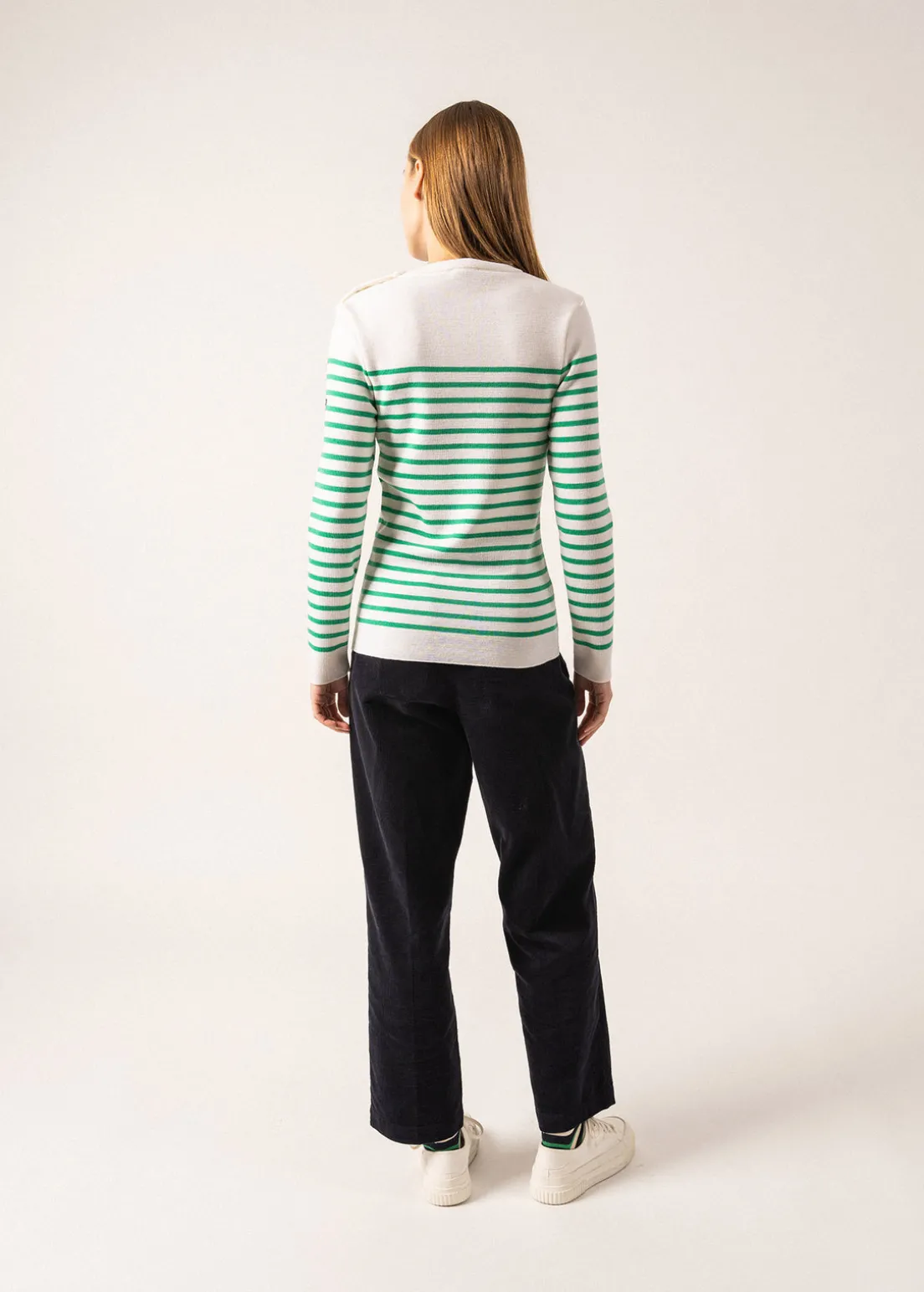 Lighter and softer than the authentic sailor jumper, the Marée jumper still features all its iconic charactesristics : slim fit, round neck and shoulder buttoning. A timeless, elegant piece.- 1×1 rib knit