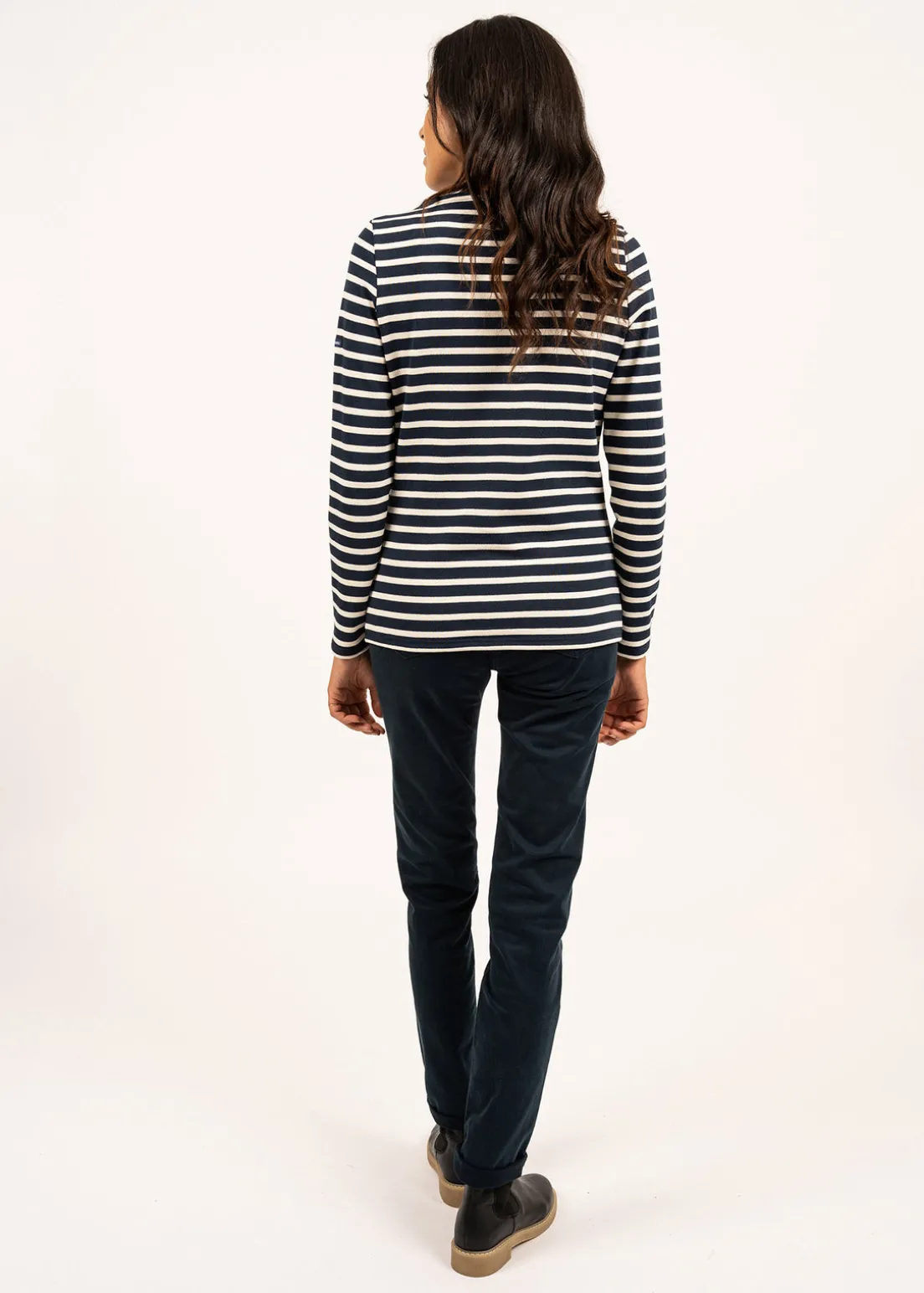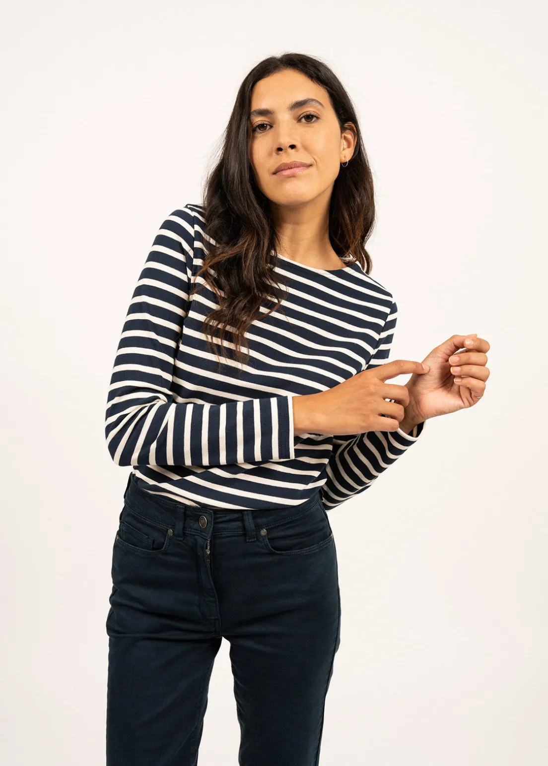 With its authentic fabric in carded cotton, the Meridame shirt is the feminine version of the original striped sailor shirt. With its round neckline and regular fit, it is a comfortable piece, easy to wear.- Thick jersey