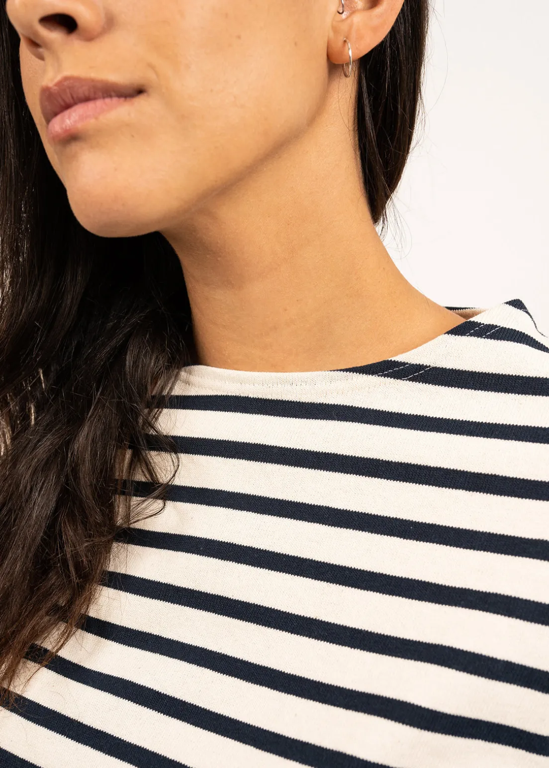 With its authentic fabric in carded cotton, the Meridame shirt is the feminine version of the original striped sailor shirt. With its round neckline and regular fit, it is a comfortable piece, easy to wear.- Thick jersey