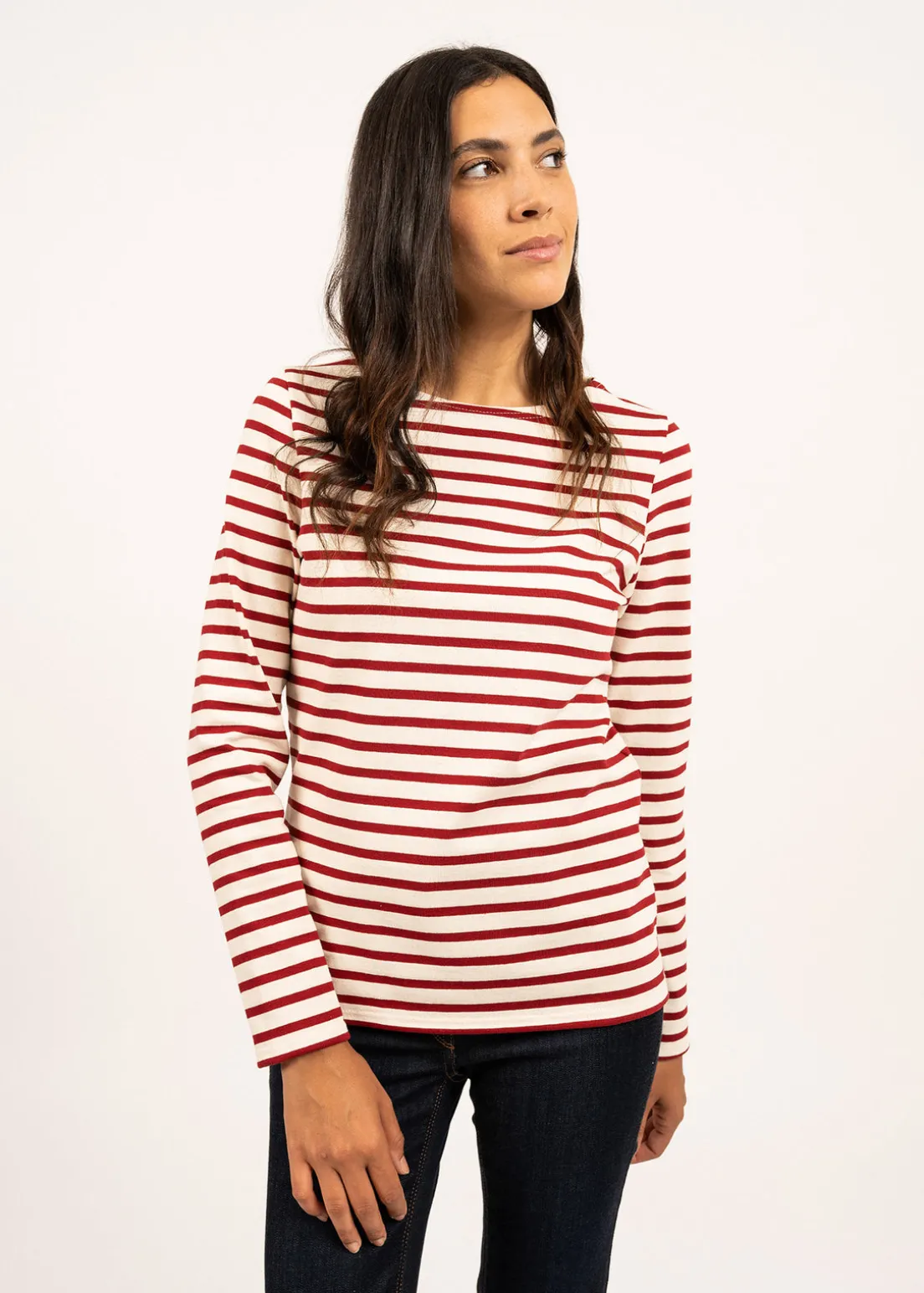 With its authentic fabric in carded cotton, the Meridame shirt is the feminine version of the original striped sailor shirt. With its round neckline and regular fit, it is a comfortable piece, easy to wear.- Thick jersey