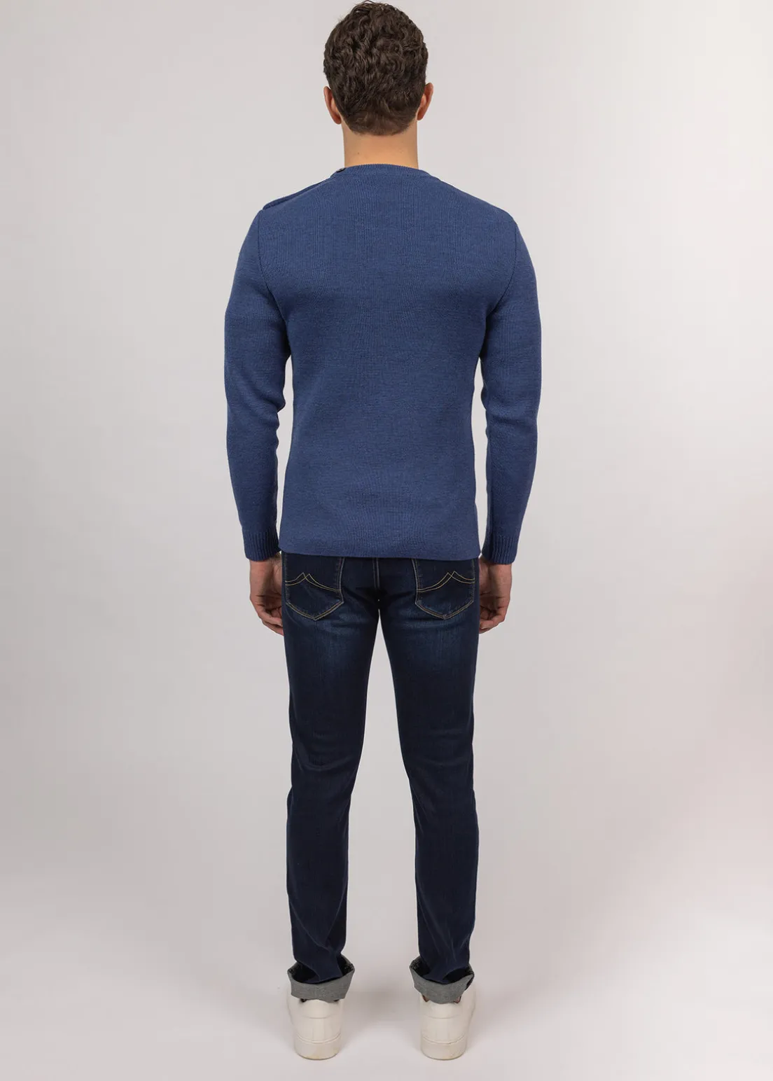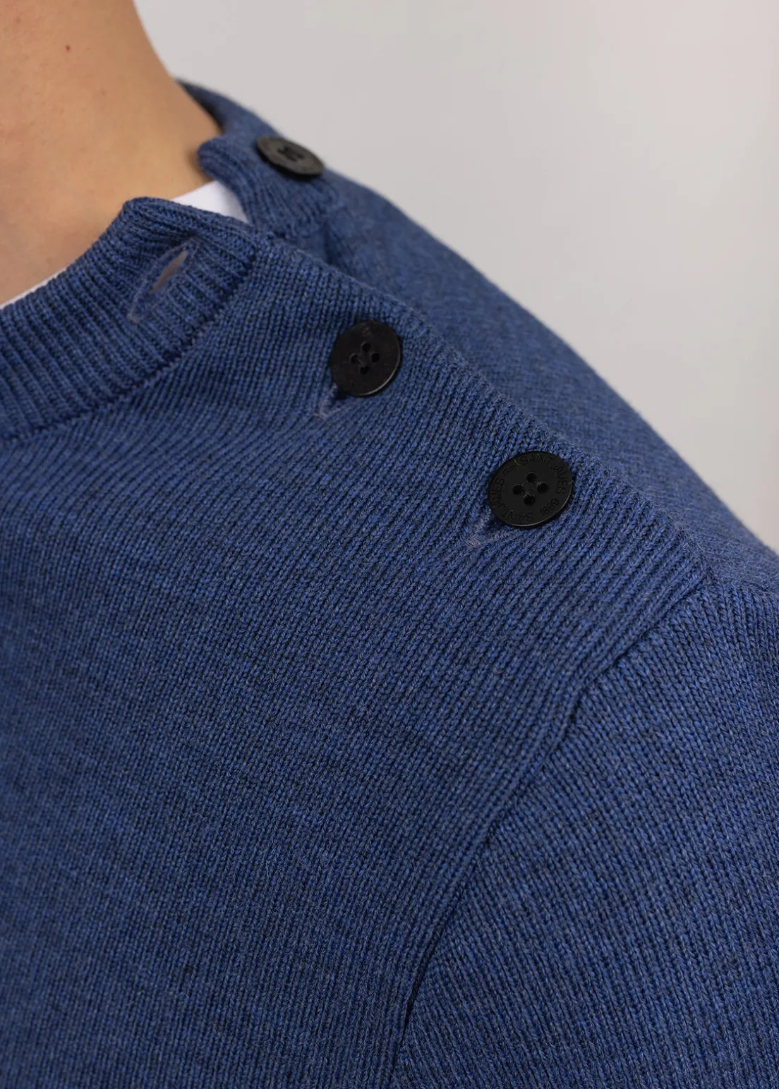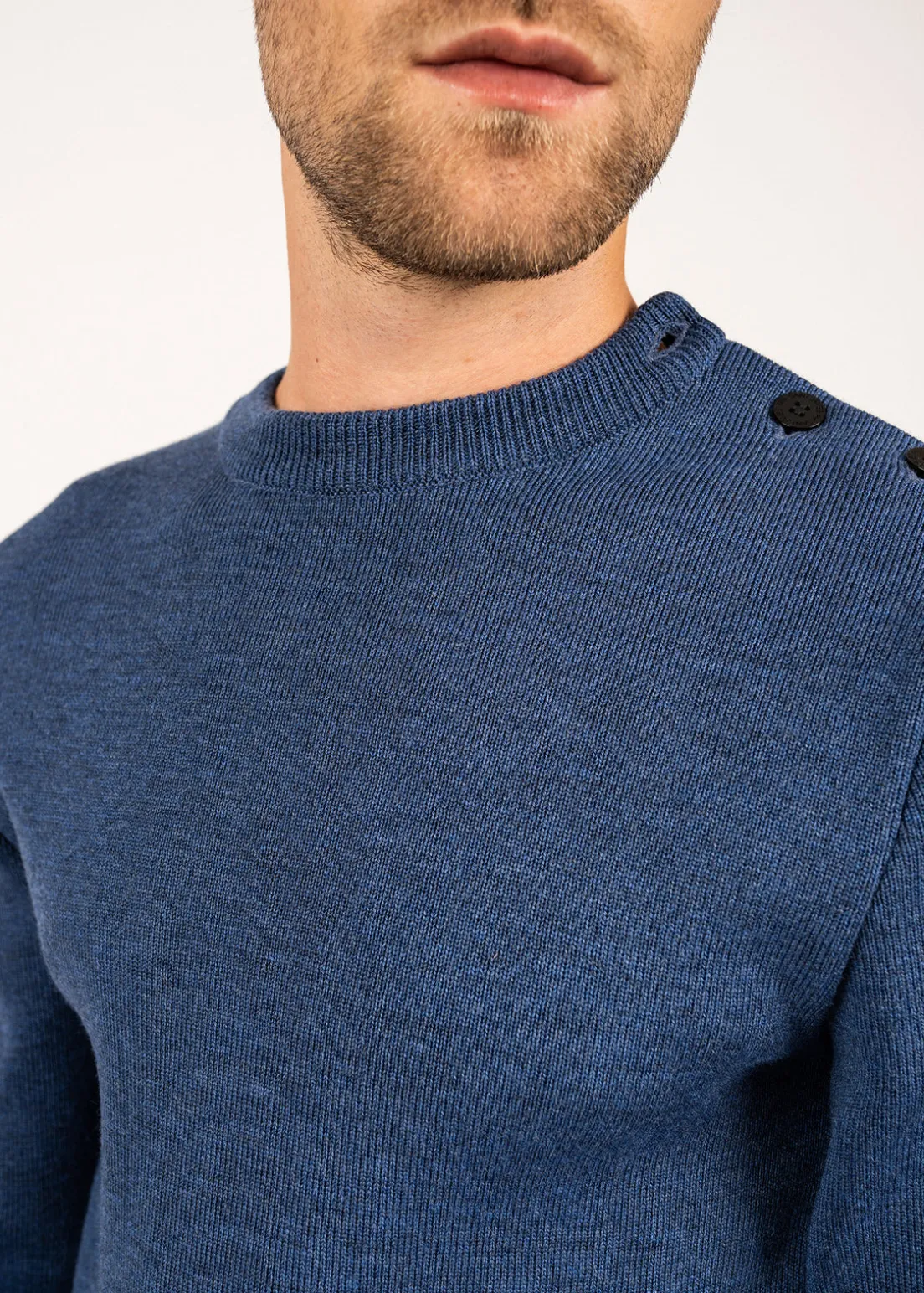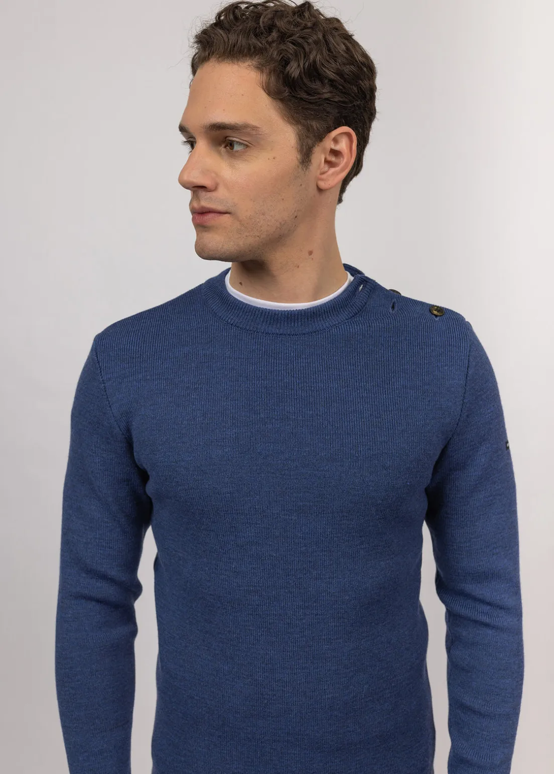Ideal for those who love the charm of the authentic sailor sweater but seek more comfort, the Rochefort sailor sweater is both traditional and comfortable. Made of merino wool, it is soft, warm, and breathable. Its cut follows the codes of the classic sailor sweater: a ribbed round collar, buttoning on the shoulder for easy donning, a 1×1 rib knit, and a length that protects the back, even when bending over.- 1×1 rib knit