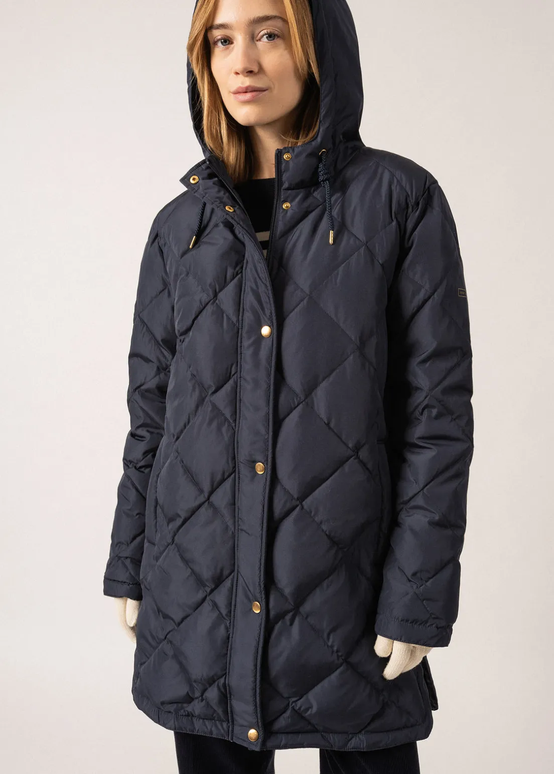 The Ste Irina down jacket is a long and slim down jacket, ideal for those who love the warmth of down jackets while retaining lightness and freedom of movement. Its hood makes it suitable for rainy weather, and its lining as well as its feather and down filling make it warm and comfortable.- Quilted jacket