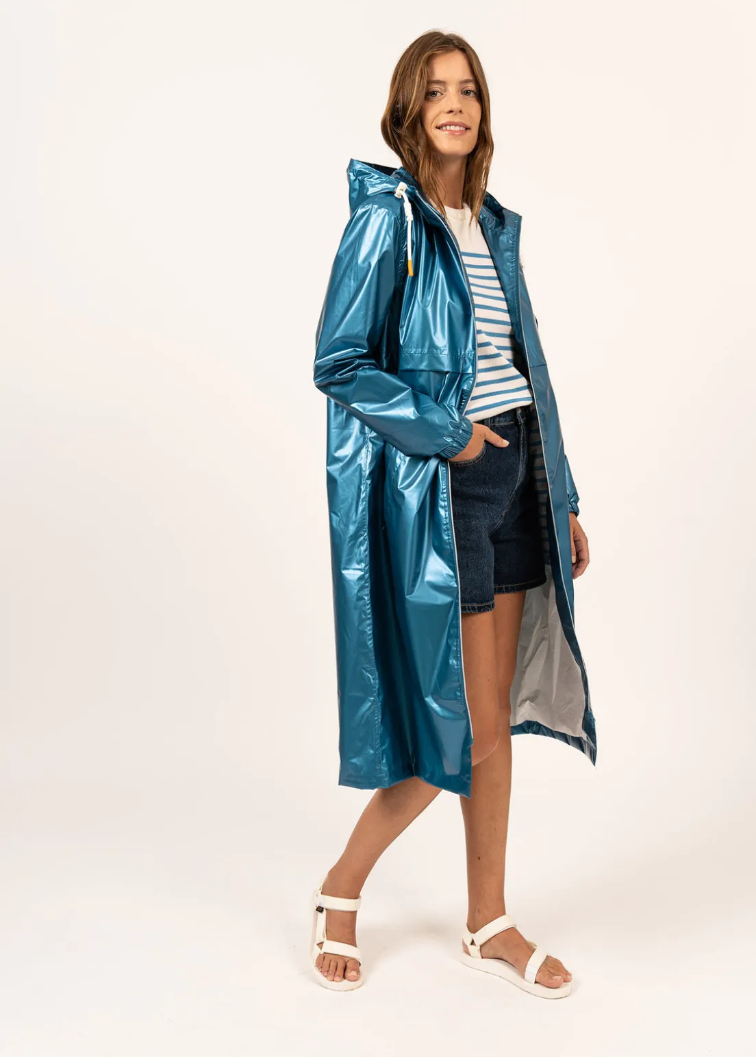 With its length and metallic fabric, the Ste Louna raincoat is a feminine, urban piece. We like its tightened cuffs and snap buttons pockets, dynamic and playful. On the inside, a striped lining remind us of our iconic sailor shirts.